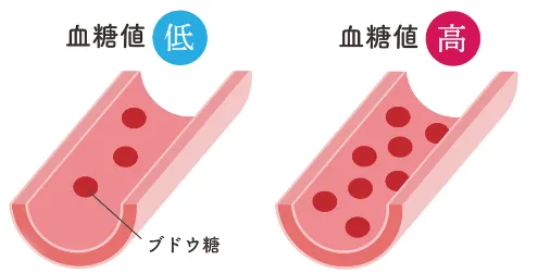 血糖値が急上昇すると、ブドウ糖が脂肪に変わりやすい。急上昇を抑えて脂肪に変わりにくい状態にします。