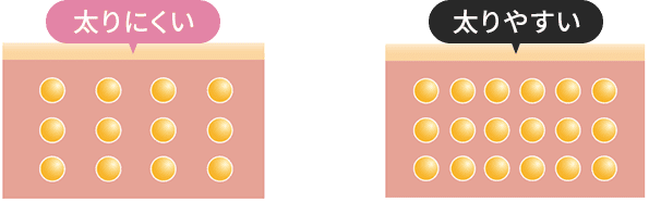 これが太りやすさに大きく関係しています。脂肪細胞が多い原因